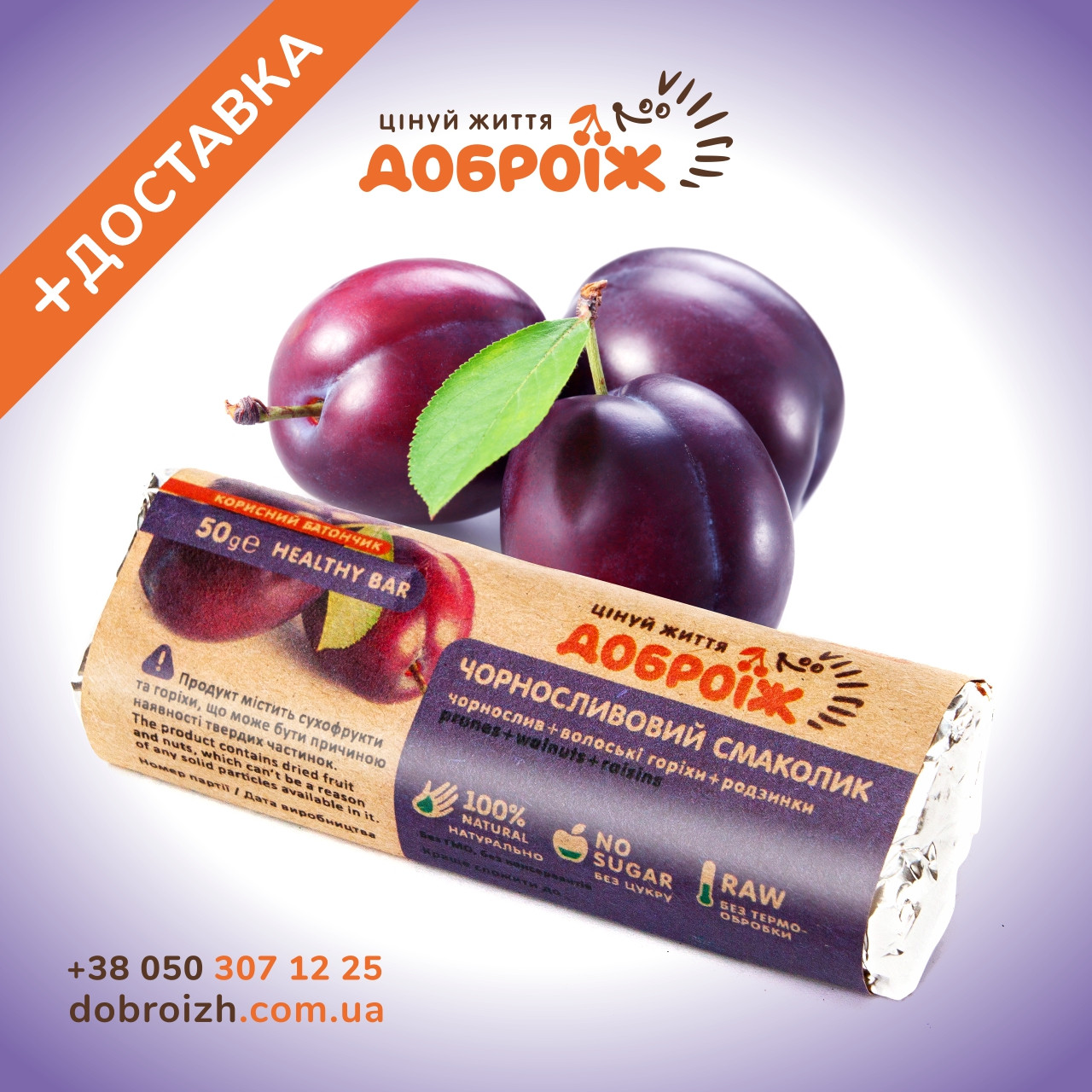 Саме цей принцип надихнув нашу компанію на створення батончиків ТМ «ДоброЇж». У поєднанні сухофруктів, горіхів, насіння та прянощів наші фахівці розробили унікальні рецепти ласощів. Для їх виготовлення використовують виключно натуральні компоненти , які не піддаються тепловій обробці, виготовлені технологією холодного пресингу, внаслідок чого не руйнуються їхні корисні властивості. Без цукру, консервантів, барвників, ГМО та синтетичних домішок. 21 різний смак!
